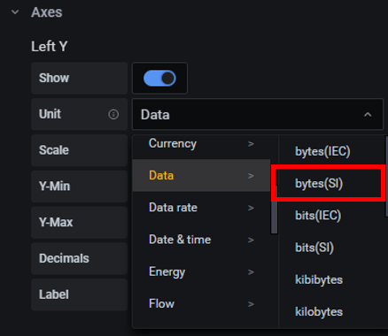 - SI 단위로 바꾸고 싶다면 Y축을 bytes(SI)로 변경한다.
