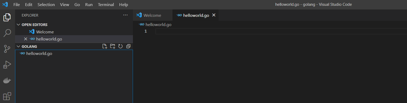 Visual Studio Code 실행 > File > Open Folder > 작업폴더 ( C:\Users\syhwa\golang ) 선택