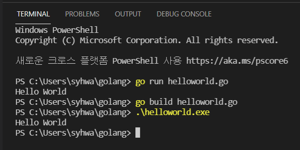 나는 C:\Users\syhwa\golang 로 생성하였다.