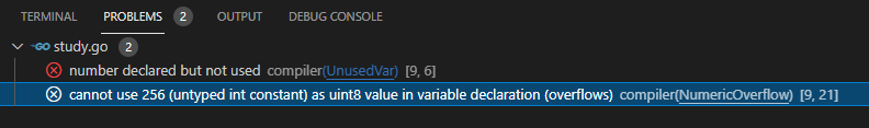 실행 전에 vscode 'PROBLEMS' 탭에서 에러 내용을 파악할 수 있다.