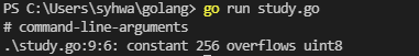 number라는 변수명을 갖는 uint8 자료형 변수를 선언. uint형 저장 범위는 0~255인데, 저장 범위를 벗어나는 256을 할당해보았다.