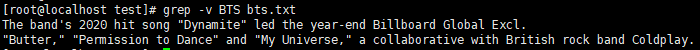 테스트를 위해 bts.txt 파일 마지막에 My Test : [A.*s] 라는 line을 추가하였다.