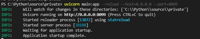 uvicorn main:app --reload --host=0.0.0.0 --port=8099