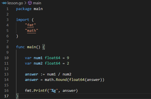 math 패키지를 import에 추가하여 수학 관련 함수를 사용할 수 있다.