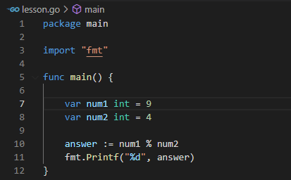 나머지 구하기. 9%4=1