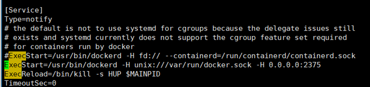 ExecStart=/usr/bin/dockerd -H unix:///var/run/docker.sock -H 0.0.0.0:2375