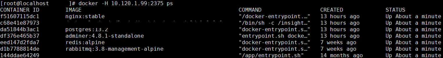 docker -H 10.120.1.99:2375 ps