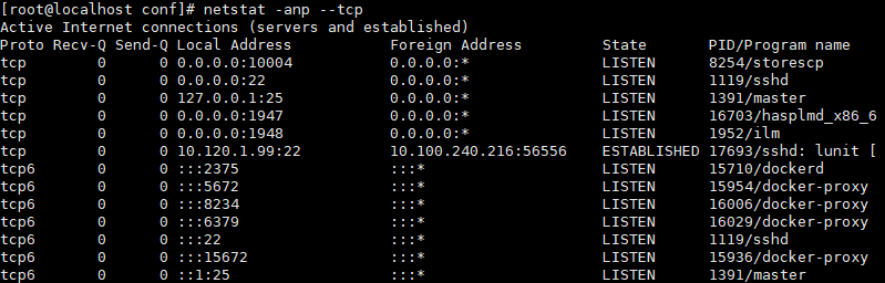 netstat -anp --tcp