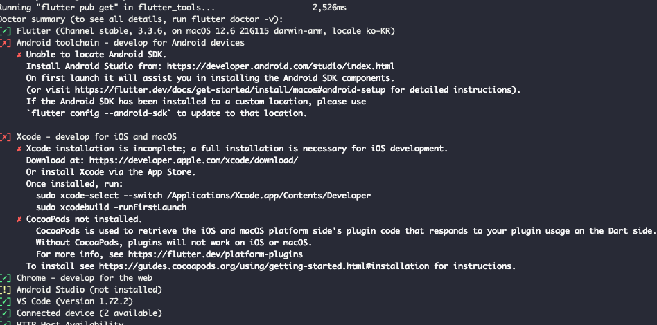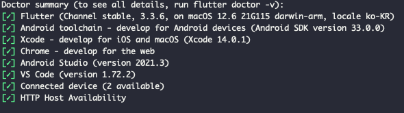 4. flutter docter 명령어로 의존성 확인